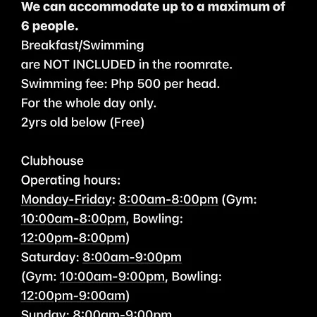 This apartment includes a fully equipped kitchen with an electric kettle, a fridge, and a toaster. The nearest airport is Ninoy Aquino International, 70 km from Splendido Tower 2 Ann'S Unit Apartment. For a more exciting experience, guests can take part in bowling during their stay.